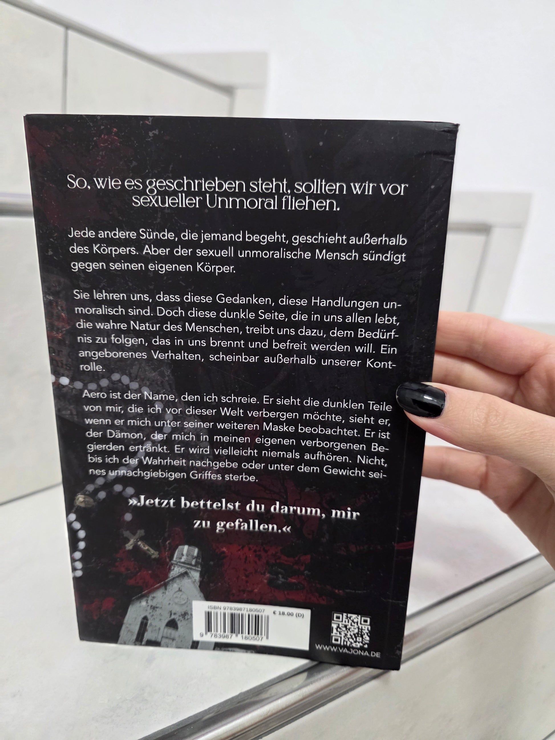 Mit farbigem Buchschnitt - limitiert - So, wie es geschrieben steht, sollten wir vor sexueller Unmoral fliehen. Jede andere Sünde, die jemand begeht, geschieht ausserhalb des Körpers. Aber der sexuell unmoralische Mensch sündigt gegen seinen eigenen Körper. Sie lehren uns, dass diese Gedanken, diese Handlungen unmoralisch sind. Doch diese dunkle Seite, die in uns allen lebt, die wahre Natur des Menschen, treibt uns dazu: das Bedürfnis zu suchen, das in uns brennt und befreit werden will. Ein angeborenes Verhalten, scheinbar ausserhalb unserer Kontrolle. Aero ist der Name, den ich schreie. Die dunklen Teile von mir, die ich vor dieser Welt verbergen möchte, sieht er, wenn er mich unter einer weiteren Maske beobachtet. Er ist der Dämon, der mich in meinen eigenen verborgenen Begierden ertränkt. Er wird vielleicht niemals aufhören. Nicht, bis ich der Wahrheit nachgebe oder unter dem Gewicht seines unnachgiebigen Griffes sterbe.